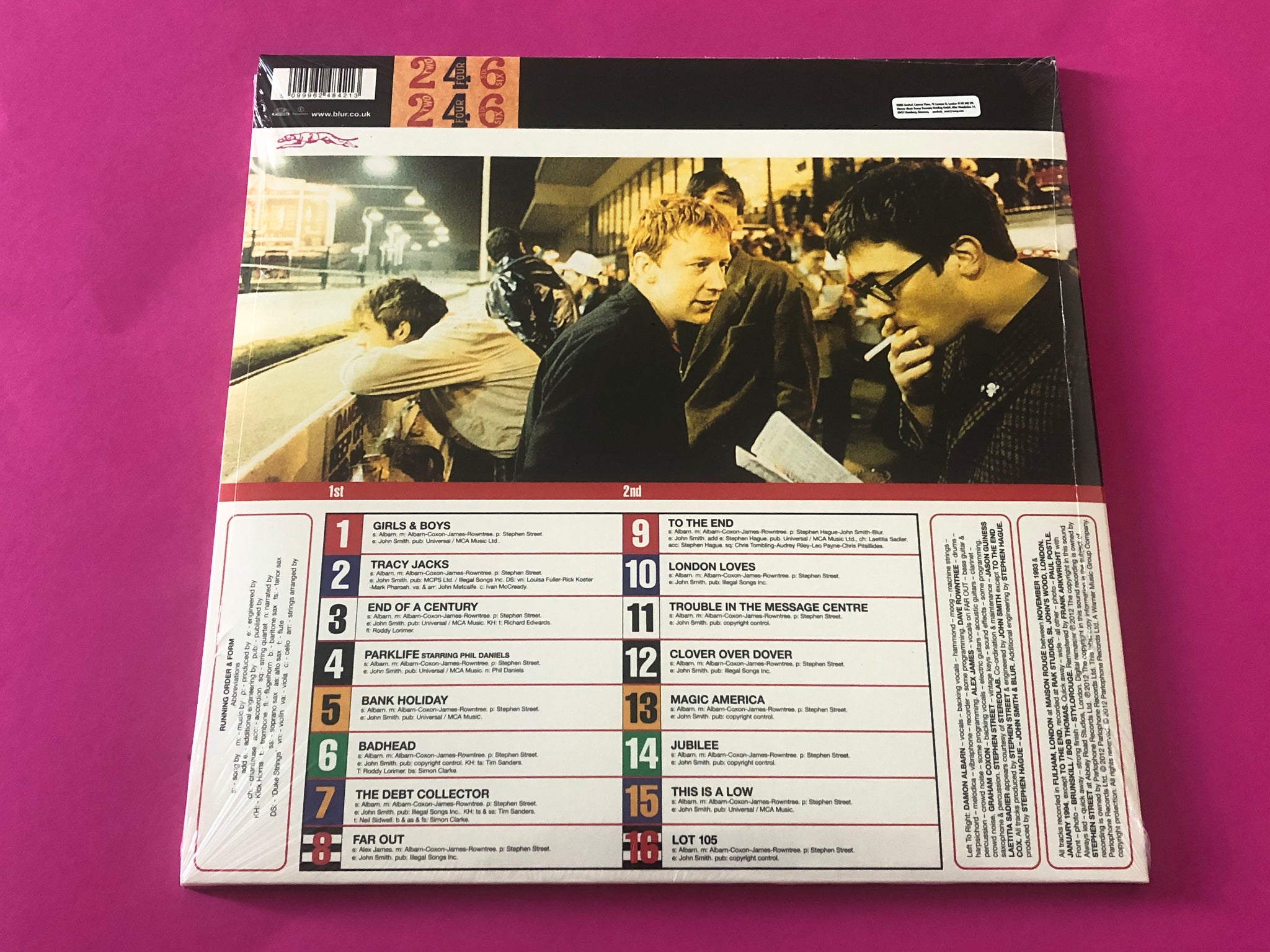 Gatefold cover, with plain die-cut red inner sleeves. Laetitia Sadier appears courtesy of Stereolab. All tracks recorded in Fulham, London at Maison Rouge between November 1993 & January 1994, except "To the End", recorded at RAK Studios, St. John's Wood, London. Remastered at Abbey Road Studios, London. Digital remaster ℗ 2012 The copyright in this sound recording is owned by Parlophone Records Ltd. © 2012 Parlophone Records Ltd. A1, C1: Universal / MCA Music Ltd. A2: MCPS Ltd. / Illegal Songs Inc. A3, B1, B2, D3: Universal / MCA Music B3, C3, D1, D2, D4: Copyright Control B4, B5, C2, C4: Illegal Songs Inc. Misprint on back cover, Bank Holiday credits publishing to "Universal / MCA MusiC". NB re "new" pressings: please see the almost identical release, [r16849218, identifiable as 2018 repress of this one from the "BI" as opposed to "BC" runout matrix. See [l313190 for more info on pressing codes/years. Similar release, [r3787140 credits p&c to EMI Records Ltd; omits "A Warner Music Group Company" on back cover. [r7579798, same as this version but on yellow vinyl. Made in the EU. www.blur.co.uk