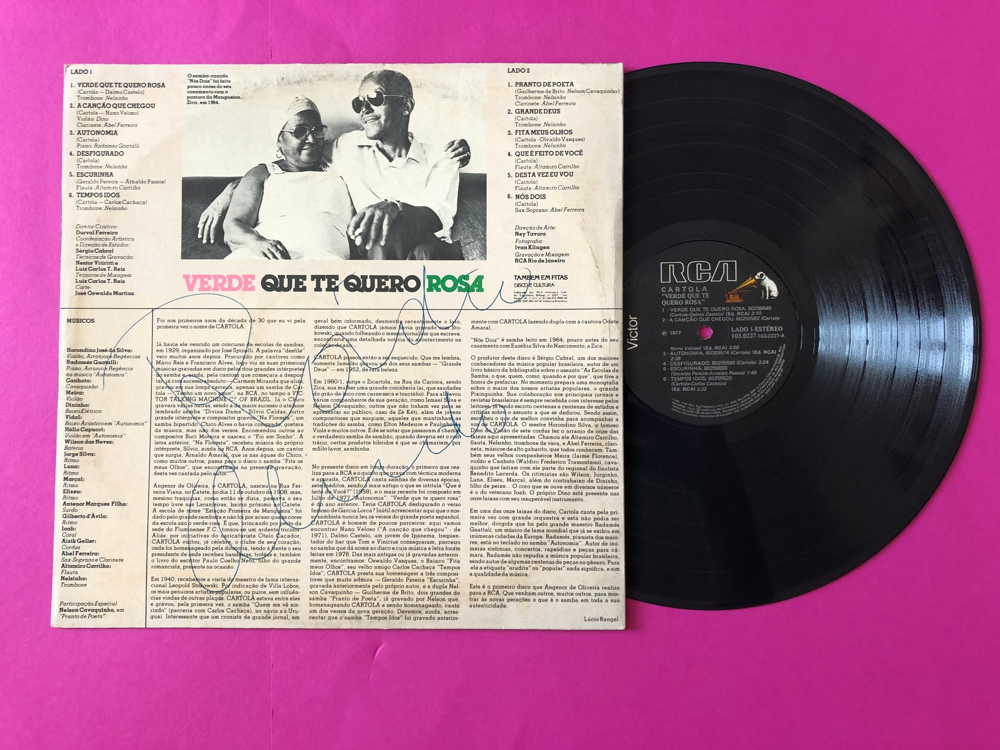 Large signature front and back. Super clean EX vinyl that plays with incredible sound. Essential for fans of MPB and samba. This album reflects Cartola’s deep emotional and cultural connection to Rio’s musical roots. A must