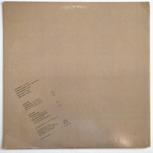 Recorded February 20, 1977 at Sound Ideas Studios, New York, NY Mixed August 24, 1978 at Blank Tapes, New York Issued with an 8-page, full-size, two-colour booklet containing sheet music (ESP, Tidal Breeze), Baker's discography until 1980, photos and credits.
