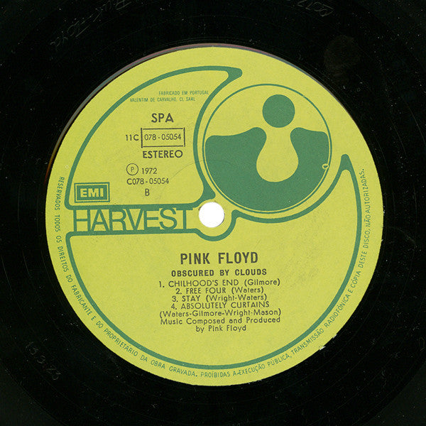 Music from the film "La Vallée" directed by Barbet Schroeder Yellow / green Harvest labels 1st catalog# on cover, 2nd on labels Price code I, some copies with stickered J. Center labels: Made in Portugal by Valentim de Carvalho SI, SARL SPA 11C 078-05054 ℗ 1972 C078-05054 EMI HARVEST Backcover: Manufactured and distributed by Valentim de Carvalho Comércio e Indústria, S.A.R.L. in associaton with THE GRAMOPHONE COMPANY LTD - Hayes - Middlesex - England E.M.I. RECORDS (The Gramophone Company Ltd) HAYES MIDDLESEX ENGLAND Sleeve has rounded corners