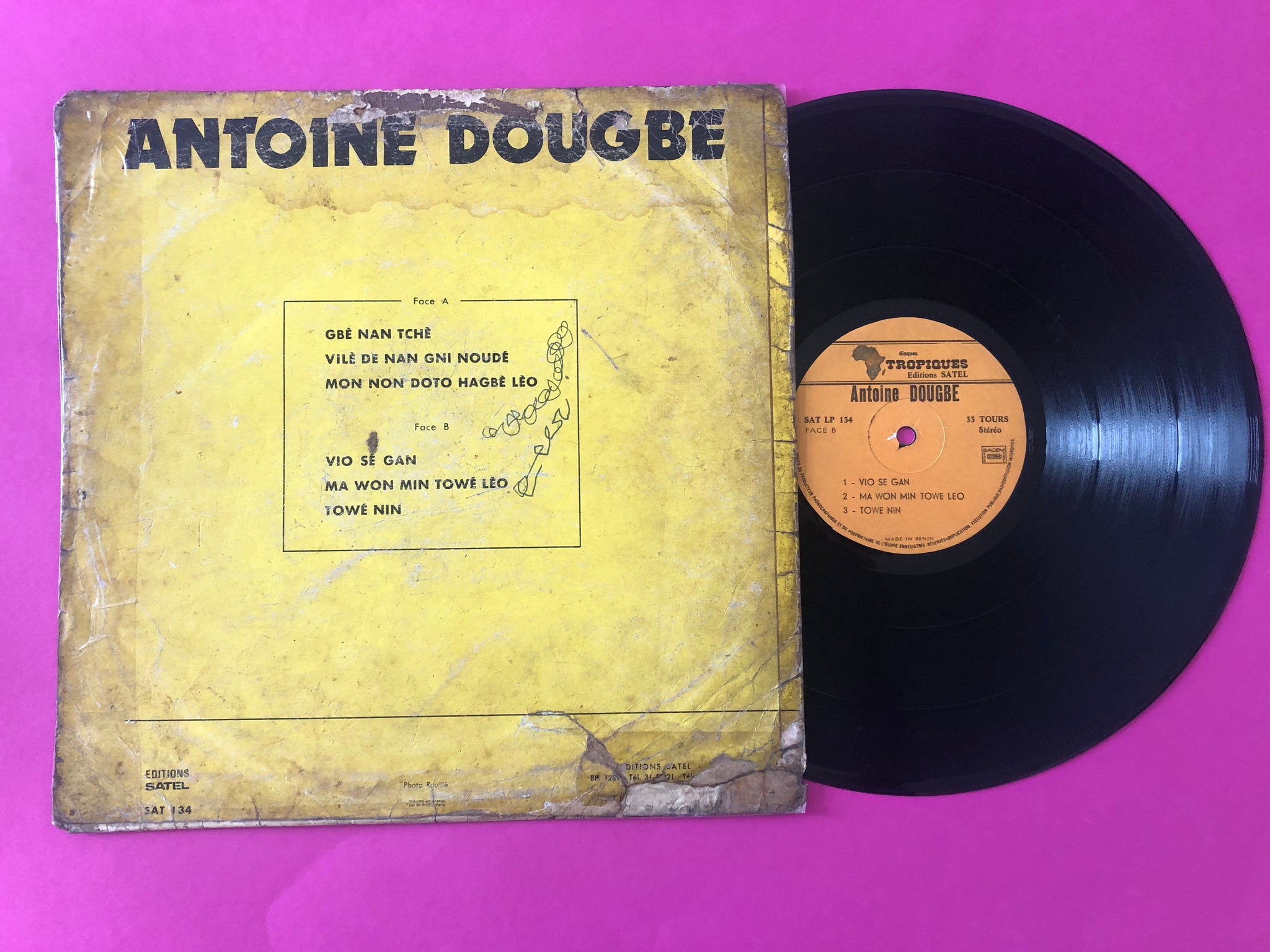 Cover is aged & has tape. Vinyl visually with surface scratches. Plays without skips. Clicks & Pops here & there but still enjoyable. A true gem from Benin’s golden era of Afro-Latin fusion. Hypnotic rhythms, Congolese-style guitars, and brassy Afro-Cuban elements.