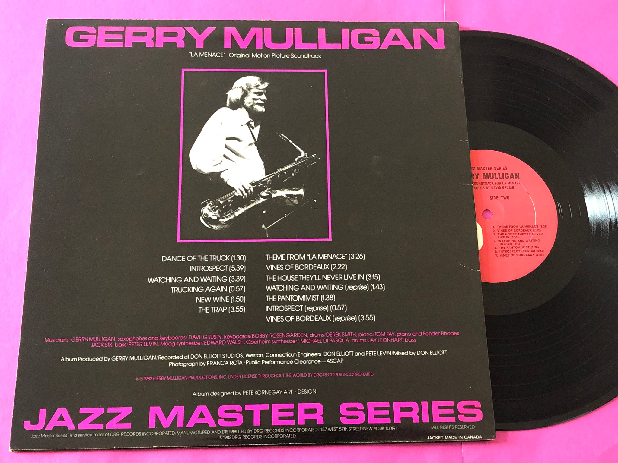EX/NM. A fascinating and somewhat overlooked soundtrack by Gerry Mulligan.The music is cinematic, and full of atmosphere, blending Mulligan’s unmistakable baritone sax tone with lush string arrangements and moments of quiet tension. You can hear the darkly romantic noir influence — smoky, elegant, slightly melancholic — with that distinct 1970s European crime-thriller vibe. La Menace is an absolute gem.
