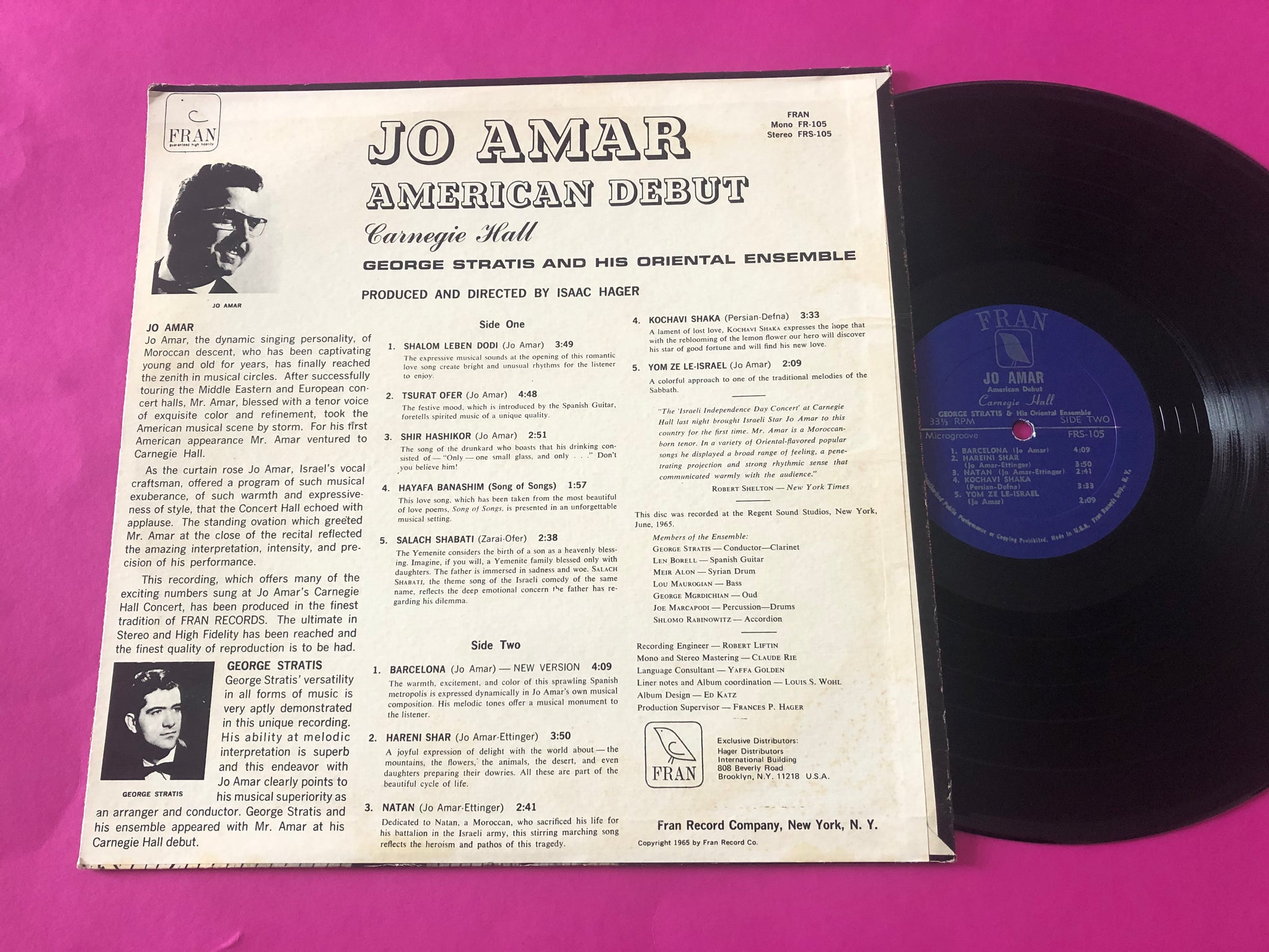 "This disc was recorded at the Regent Sound Studios, New York, June, 1965." Jo Amar accompanied by "George Stratis And His Oriental Ensemble"