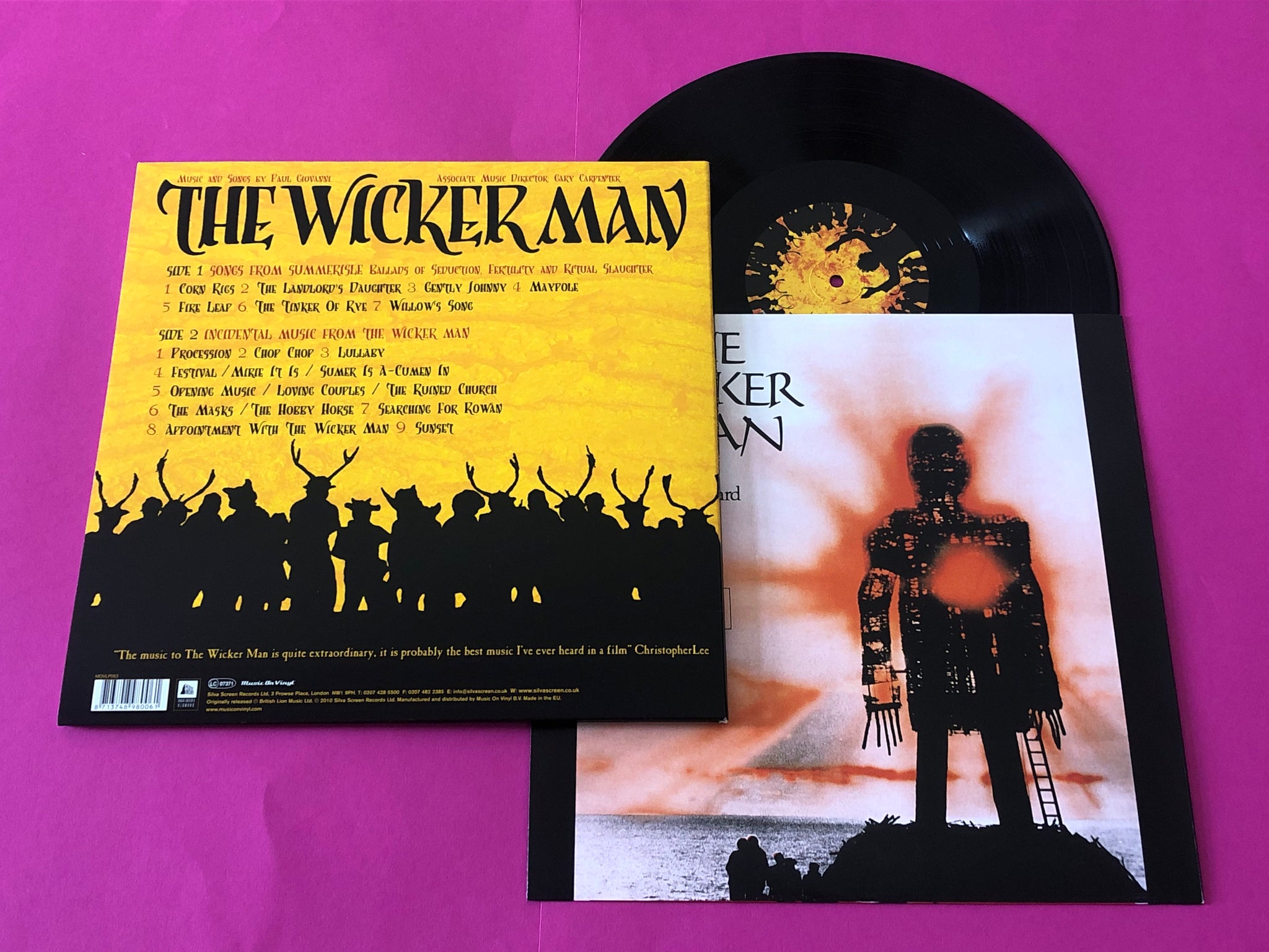 Packaged in a gatefold sleeve with notes and stills from the movie plus printed card inner sleeve (two movie posters). Hype black sticker on outer resealable clear plastic bag: "Music On Vinyl Classic Album 180 gram audiophile vinyl pressing www.musiconvinyl.com" Tracklist (tracks, times, layout) on jacket inside =/= tracklist on label. On rear and on label "Incidental Music From The Wicker Man" begins with the first track of side B, on the printed inside with track B5. [Back cover: "The music to The Wicker Man is quite extraordinary, it is probably the best music I've ever heard in a film" Christopher Lee Originally released ℗ British Lion Music Ltd. © 2010 Silva Screen Records Ltd. Made in the EU. [Gatefold inside, liner notes: © Simon Wells, May, 2002 Co-author of 'Your face here: British Cult Movies Since the Sixties' ©Gary Carpenter [Label, side B: ℗ 1973 British Lion Music Ltd. © 2010 Silva Screen Records Ltd.