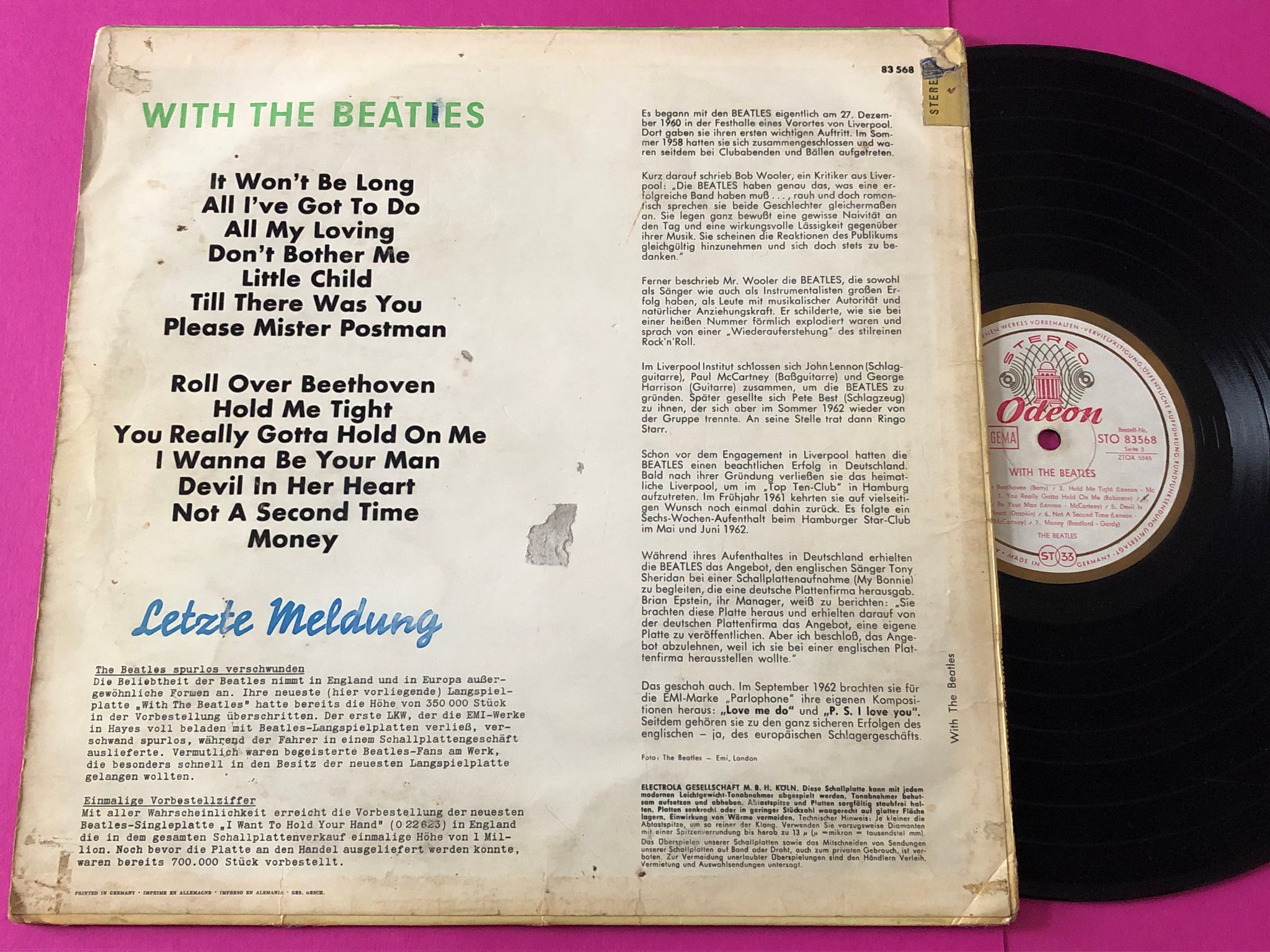 1963 original German Gold/white/red Odeon with Golden Sticker on top left. 15cm Seamsplit on top seam, general age wear and surface marks but plays however quite nice with little bg noise mostly between tracks. Hi Hat intro to all my loving on this version!
